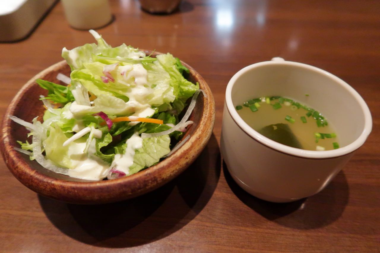 ライスとサラダとスープのセットを頼んだ。ライスとスープはおかわり自由になっている。炭水化物はあんまり取りたくないので、サラダがおかわり自由だと嬉しいんだけどねぇ〜。