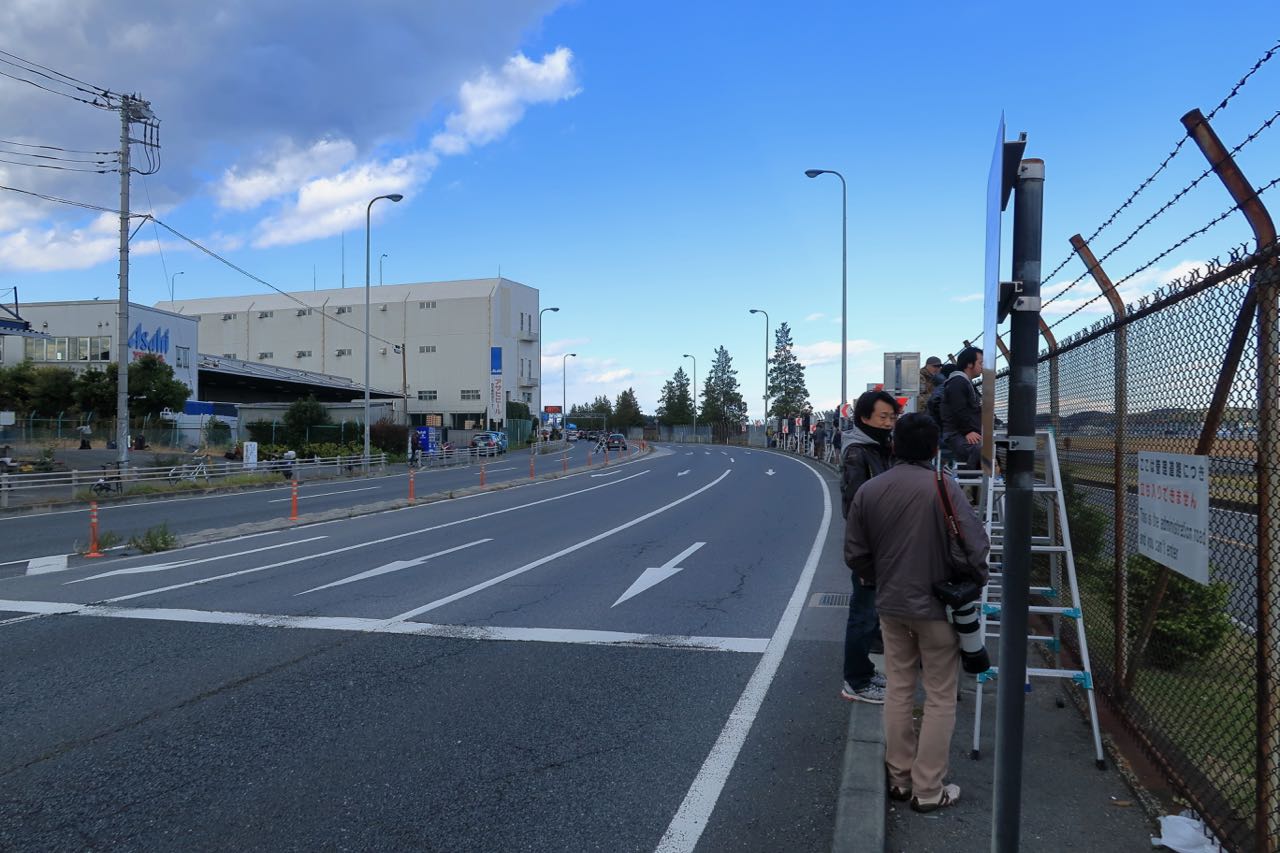 何があるのか知らないけど、カメラマンがたくさんいた。隅の方に米軍の飛行機があったので、あれが飛び立つところを撮りたいのかな?