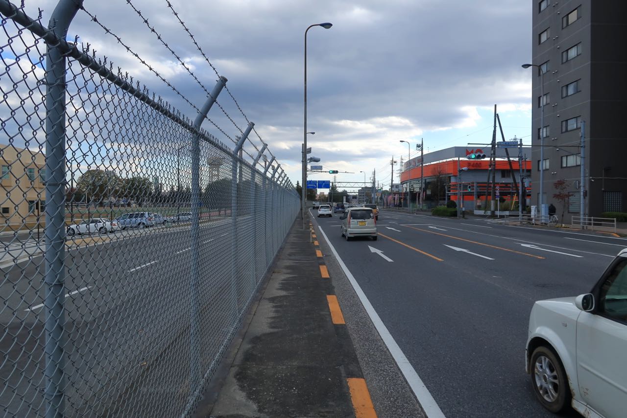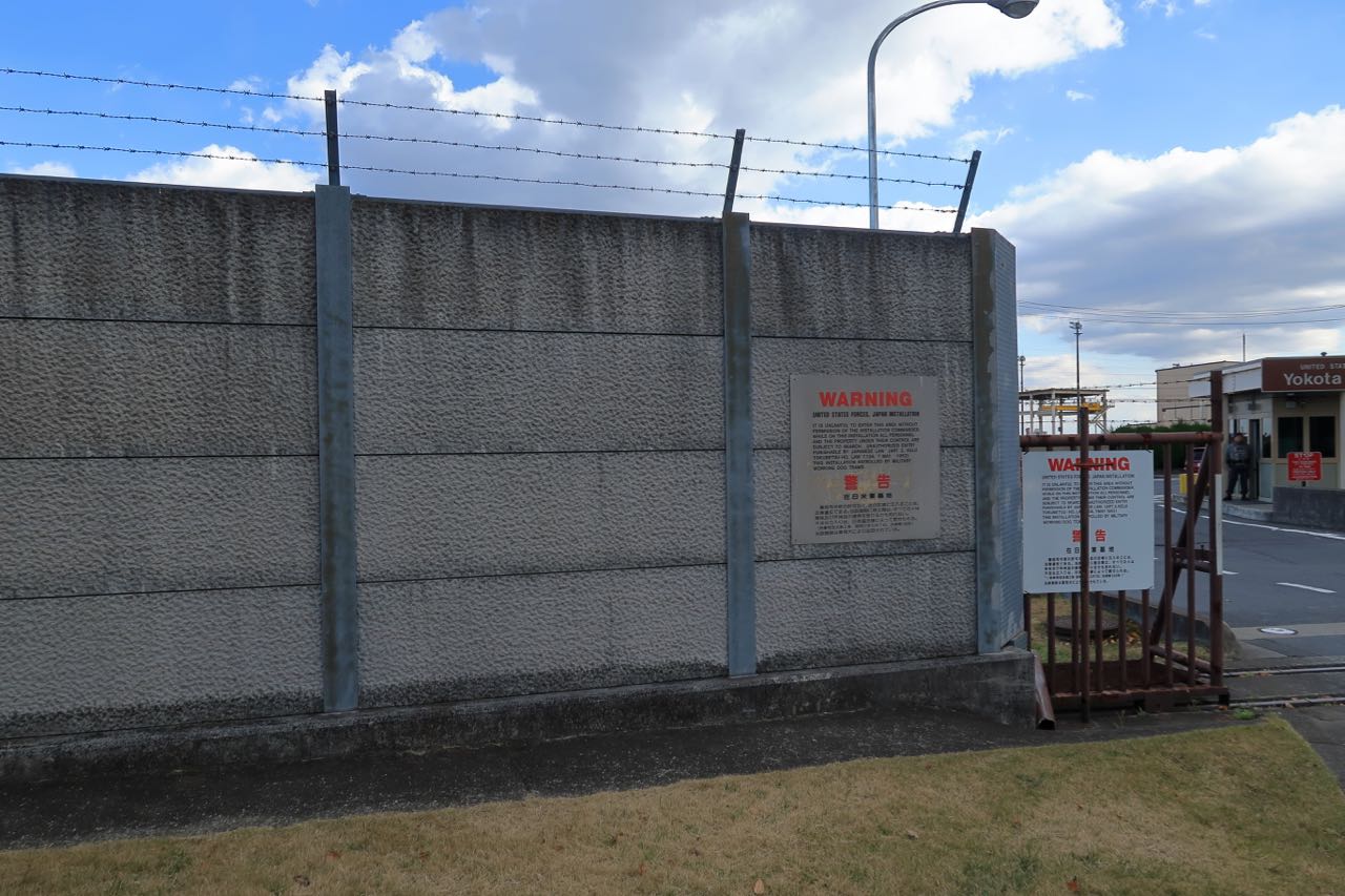 横田基地の周辺は有刺鉄線で囲われている。ほとんどは壁だったのだけど、ハイスクールのあたりは金網になってて、中を見ることができる。