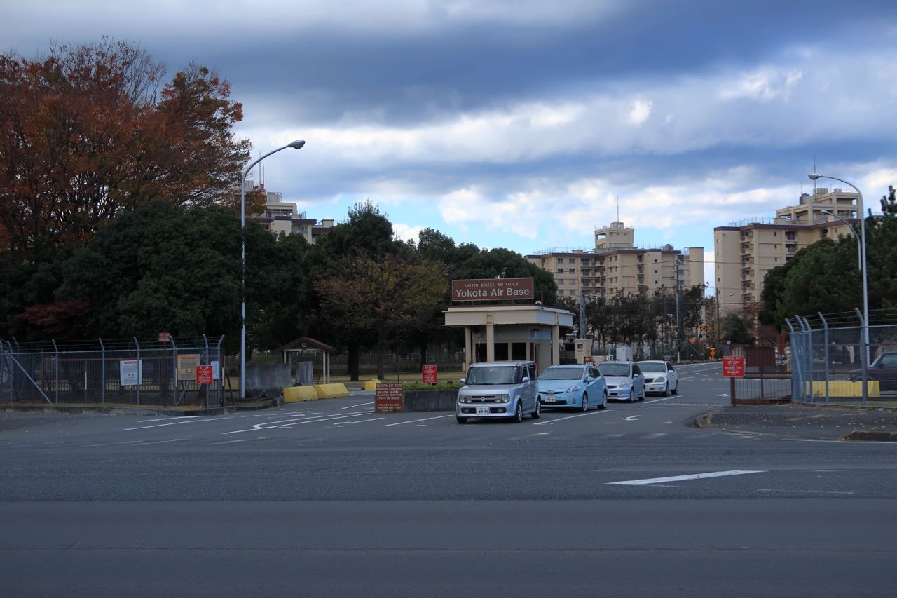 横田米軍基地があった。ついこの前、トランプ大統領が出入りしたところは、ここかぁ〜。