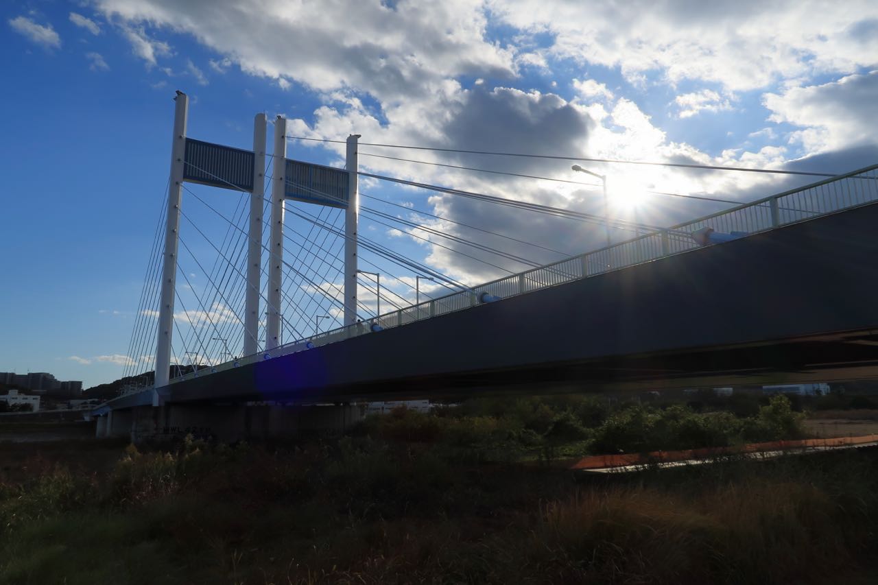 しばらく交通量の多い道を通った後、多摩川サイクリングロードに入った。向かい風がそこそこ強かったので、のんびり走っていたのだけど、三人でトレインを組んでいる人たち (ボトルケージがサドルについてたから、たぶんトライアスリート。) に抜かれたので、しばらくついて行くことにした。でも、いまいち調子が上がらなくて、 20 分ほどするとついていけなくなった。 ^^; なんか体が鈍ってる気がするけど、写真を撮りたいから、まあ、いいか。 ^^;