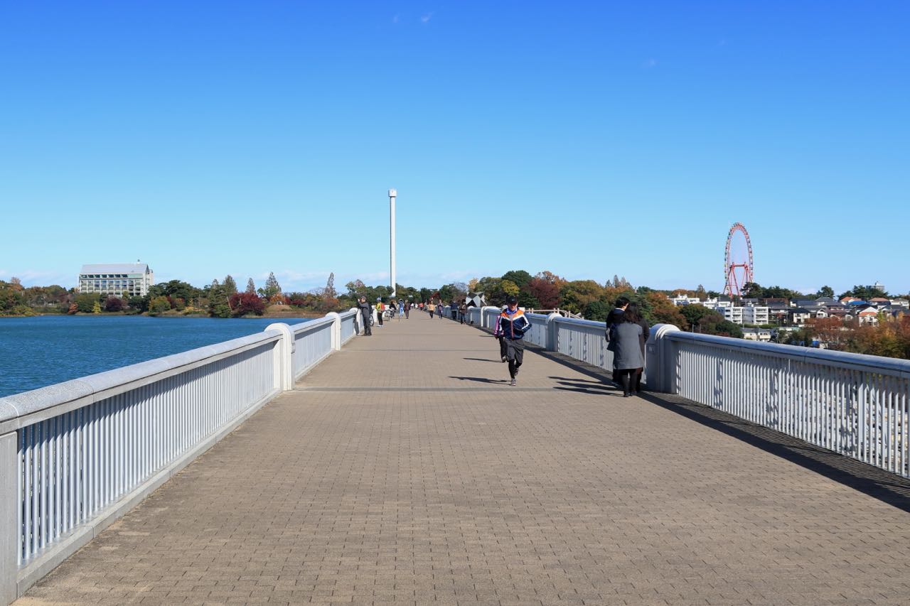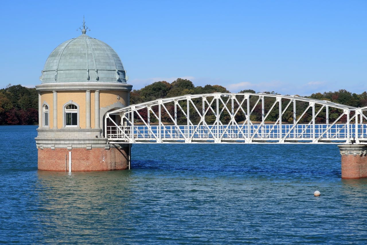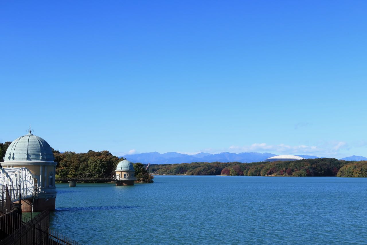 多摩湖到着。ここの取水塔は絵になるねぇ〜。 ^^