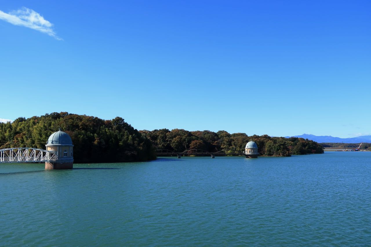 取水塔の間の森林が紅葉に見えたんだけど、写真を観るとそうでもなかった。 ^^;