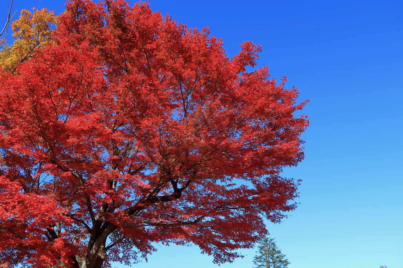 天端を渡った先にあった真っ赤なモミジ。空の青と絶妙なコントラストだ。 ^^