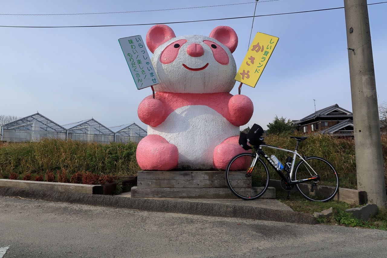 ピンクパンダ発見! ポイント獲得条件のほとんどは、目標物と自転車を一緒に撮影することなので、自転車を置いてパシャり。