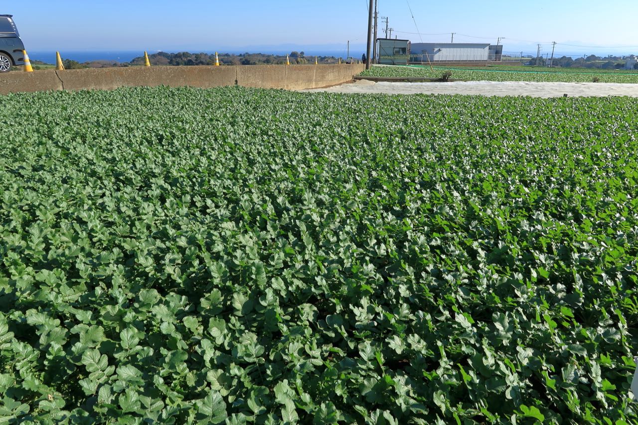 かなり南端が近づいて来た。鮮やかな緑の畑は大根だそうな。そういえば、三浦大根って聞いたことがある。