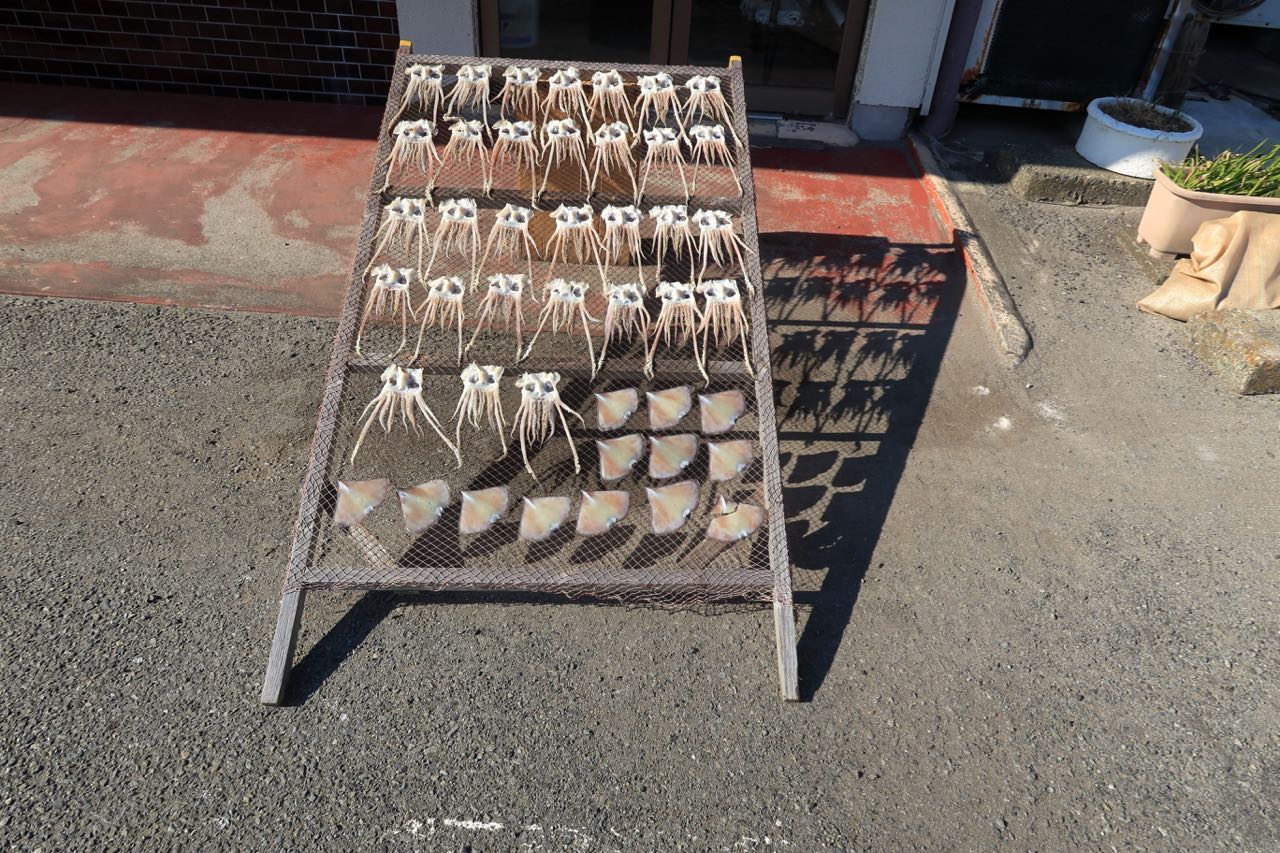 お店の前では、イカを天日干ししていた。