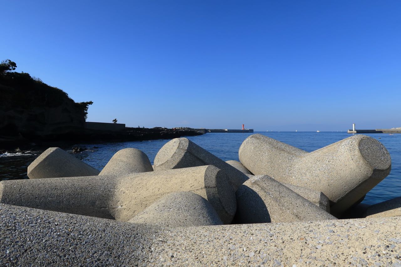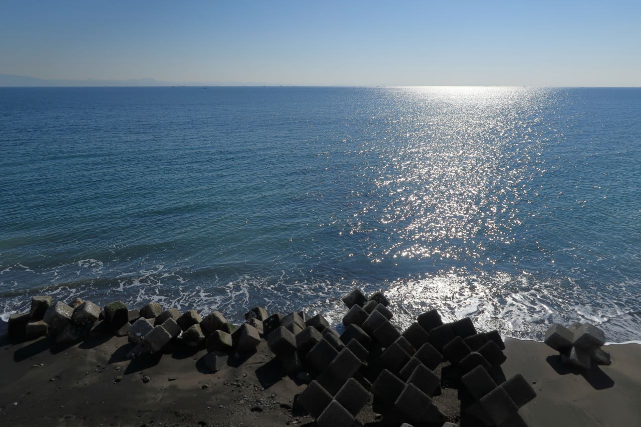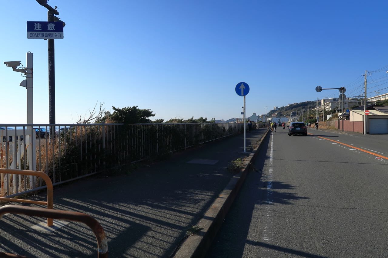 葉山あたりかな? 「おぉ! 富士山が見える!!」この辺りで朧げで儚い富士山がうっすらと見えて、テンションが上がっていたのだけど、撮影してみたらまったく見えない。みんなで幻を見たのかな? ^^;
