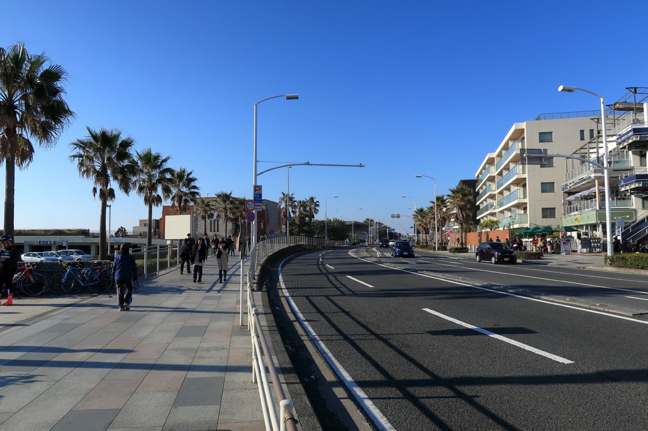 食後は、海辺に移動して記念撮影。そして、江ノ島を目指して走り出した。