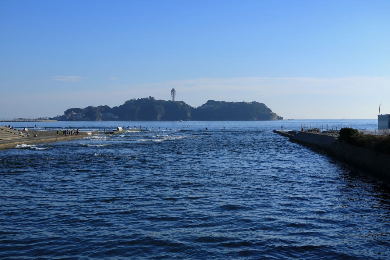 間も無く、ゴール地点の江ノ島。何かの聖地 (ラブライブ?) のようで、みなさん写真を撮っておられる。