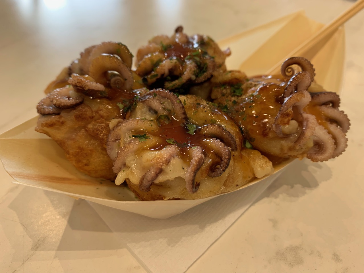 写真映えするたこ焼きがあったので、軽く補給食。これこそ、たこ焼きやん! ^^