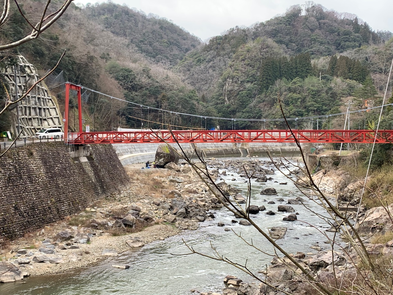 前日のドライブで、道場駅から西谷へ抜ける川沿いの道を走ってたら、川の流れがおかしいことに気付いた。